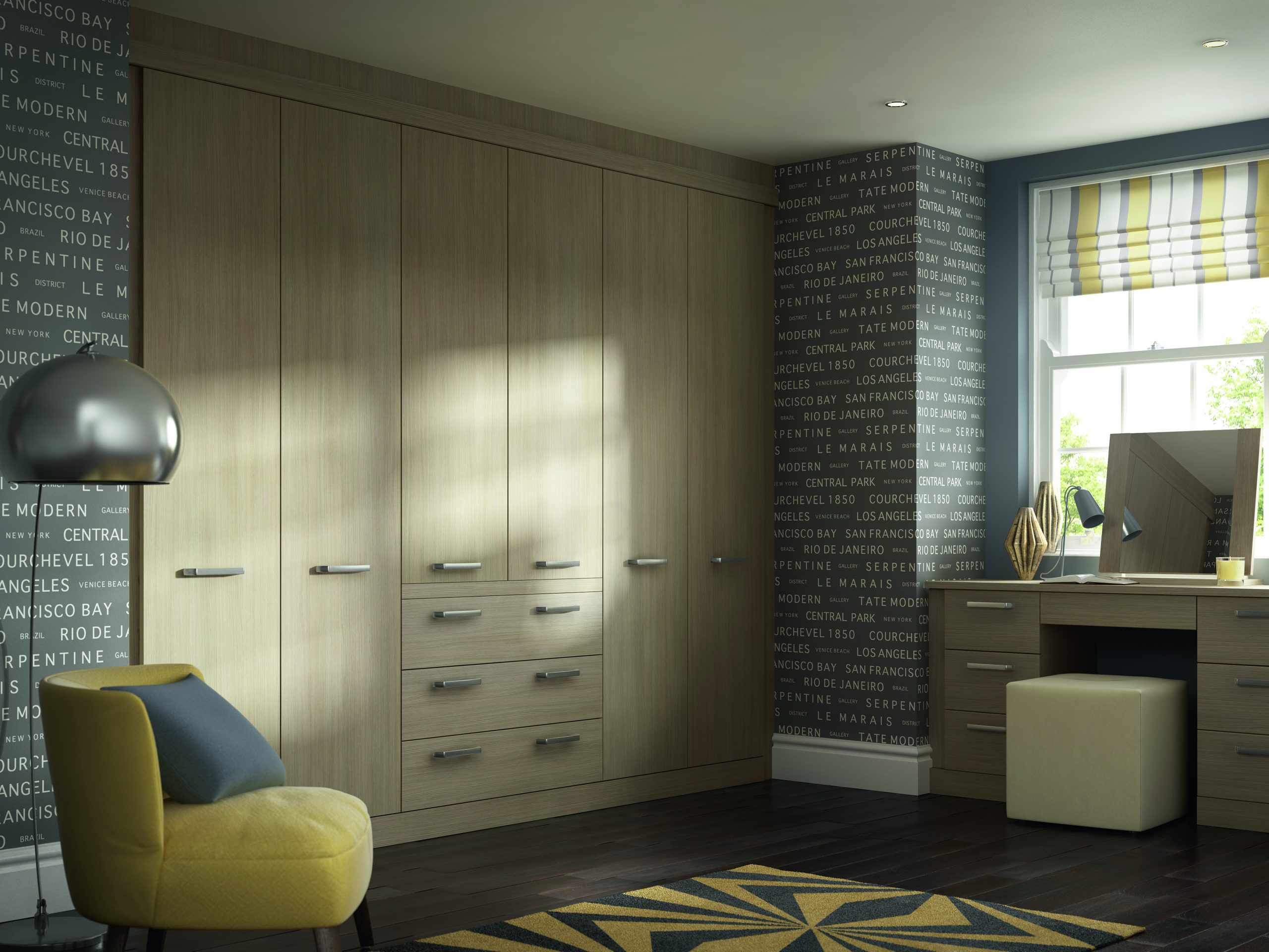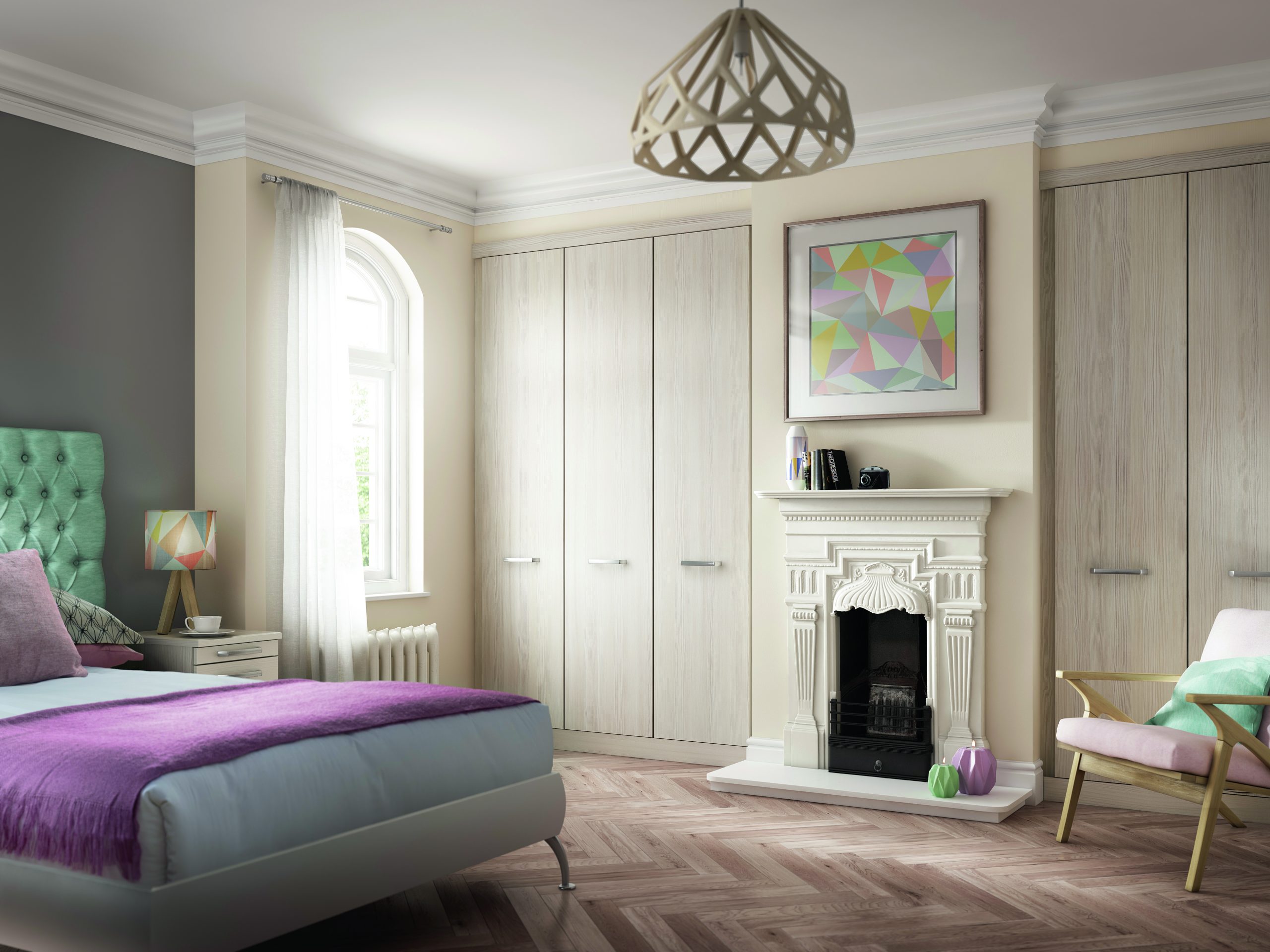 Words that can be used to describe Solo. Simple, uncluttered, and timeless. It’s a clean and versatile slab door available in a number of stylish colour options including Graphite and Matt Nordic Grey. We then complete the look with a heavy brushed steel handle. All of our robe doors can be specifically tailored to any slope. This lends a bespoke feel to the bedroom and allows for maximum storage.